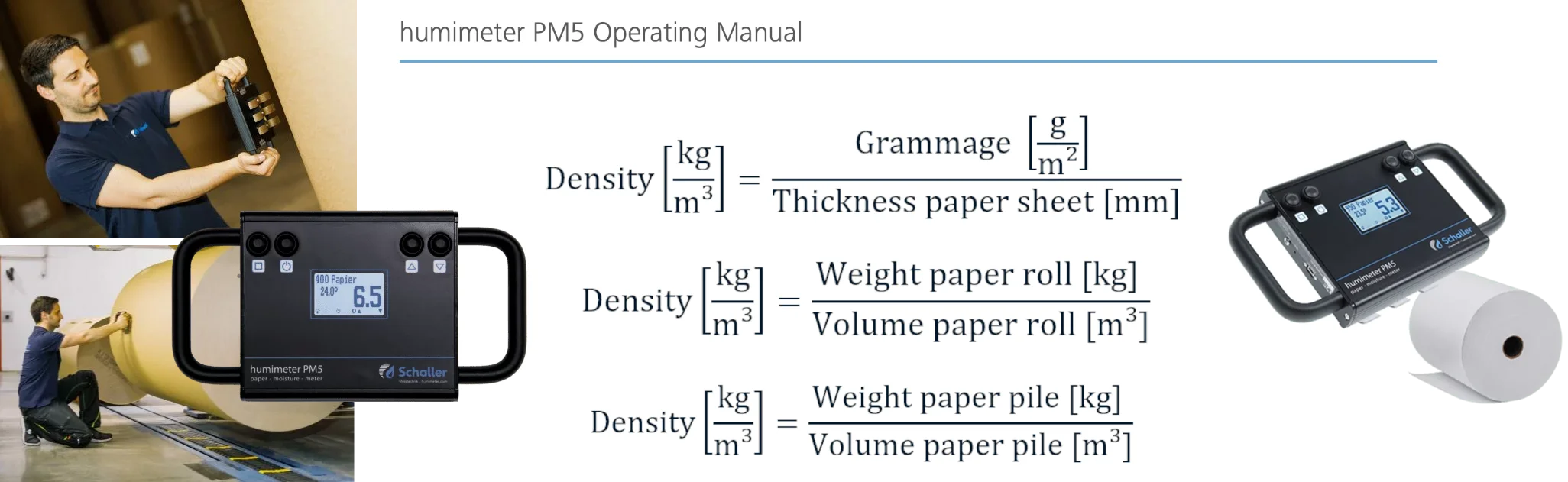 Przeliczanie gęstości papieru kg/m³ na gramaturę g/m² w mierniku humimeter PM5