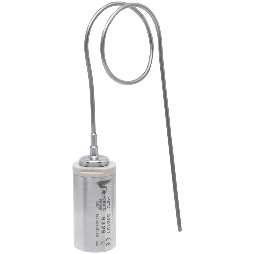 Tecnosoft MicroW L Bendable – rejestrator temperatury z giętką sondą 300 mm (pierwsze i ostatnie 30 mm sztywne). Zakres do +500°C, dokładność ±0,1°C, IP68. Doskonały do precyzyjnych pomiarów w trudno dostępnych miejscach procesów termicznych.
