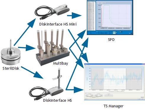 SterilDisk Probe M5 współpracuje z oprogramowaniem SPD oraz TS Manager (wersja Basic/Pro zgodna z FDA 21 CFR Part 11). Do komunikacji służy interfejs DiskInterface HS lub Universal Multibay.
