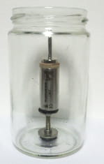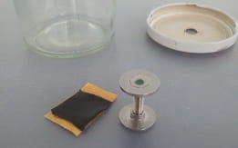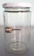 Na gwintowany trzpień, dobrany do wielkości pojemnika, nakręca się dwie podstawy. Taśmą klejącą mocuje się jedną podstawę do wnętrza pojemnika (dna, ściany lub pokrywki), a do drugiej przykleja się rejestrator. Taśmę samoprzylepną można łatwo wymienić.