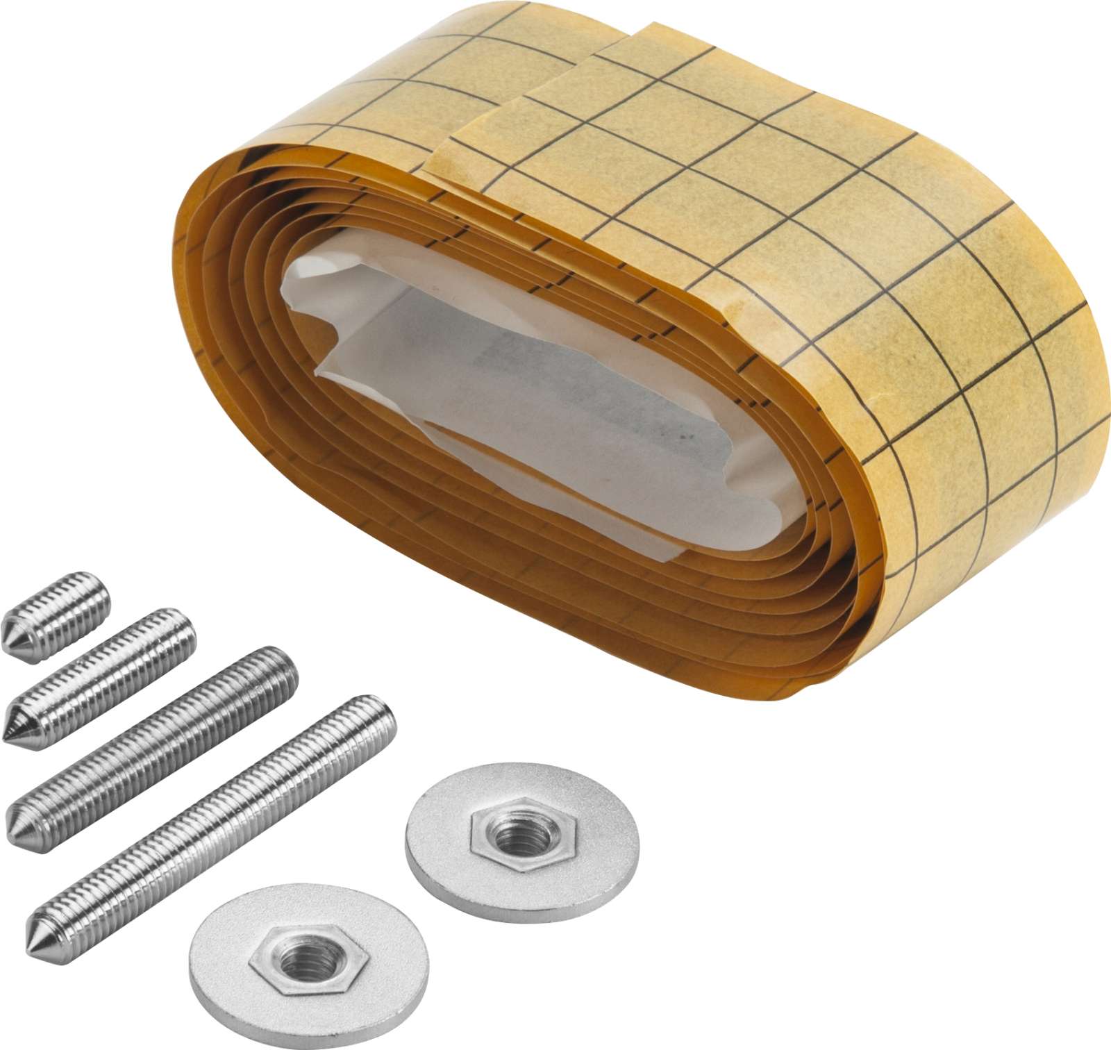 Zestaw składa się z gwintowanych trzpieni o długości 10, 20, 30 i 40mm, dwóch nakrętek oraz 1 metrowej taśmy dwustronnie klejącej odpornej na wysokie temperatury (do 140°C). System umożliwia umieszczenie rejestratorów wysokotemperaturowych na dnie, ścianie lub pokrywie pojemnika.