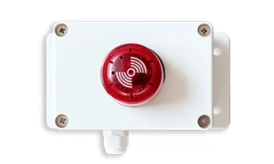 UbiBot Lokalny Sygnalizator Świetlno-Dźwiękowy do WS1-Pro. Syrena do 90 dB + jasna dioda LED, zasilanie bezpośrednio z rejestratora. Gwarantuje natychmiastowe powiadomienie o alarmie temperatury lub wilgotności.